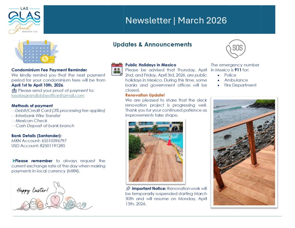 HAVE MAINTENANCE QUESTIONS? Please contact the office at lasolasgrandlobbyoffice@gmail.com or call the office at (661)614-6009. You can also stop by the lobby office during office hours.